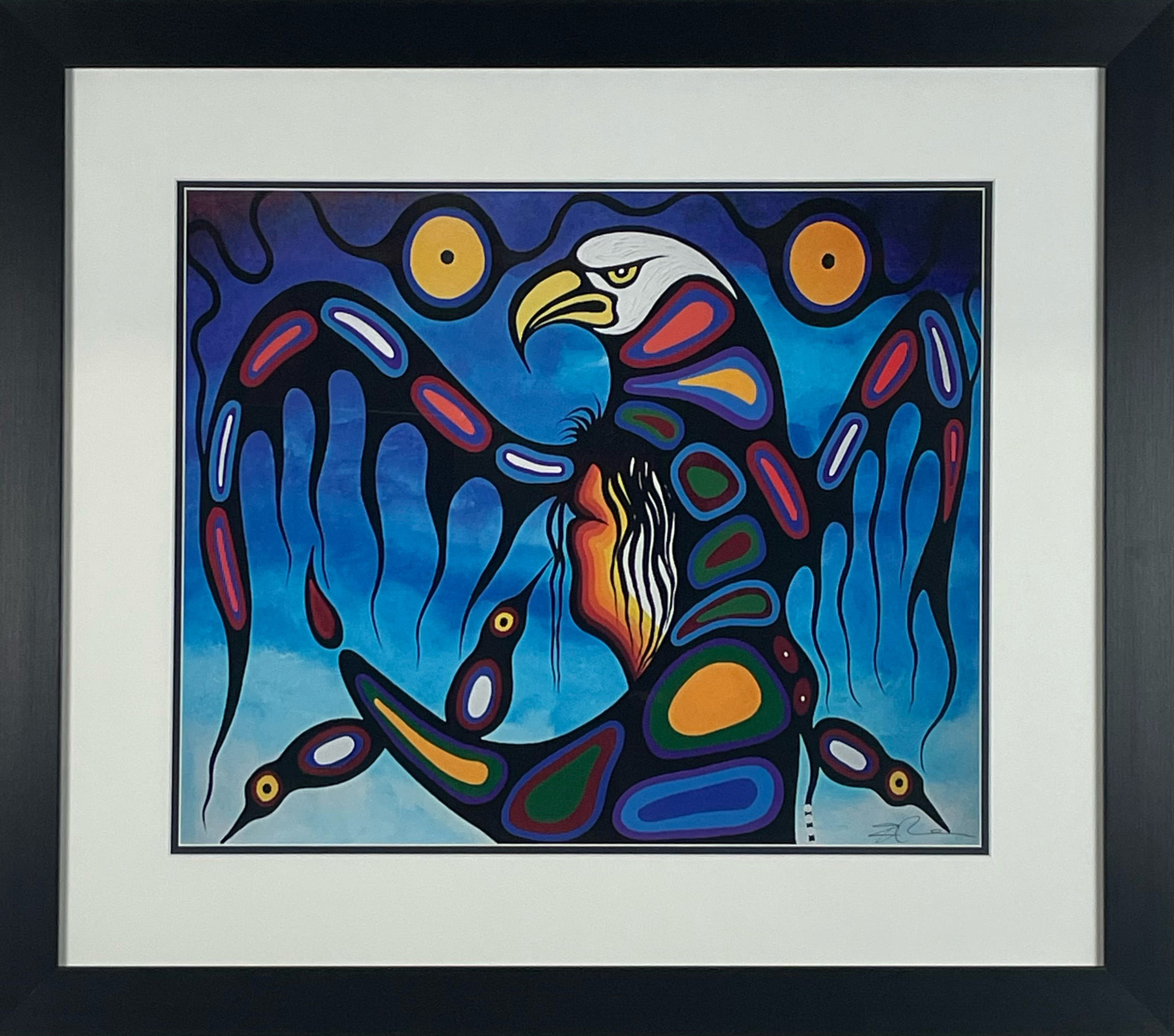Open edition giclee print from the Indigenous Collection from CAP & Winn Devon. Single matted with a white top mat and a 2″ flat black frame. An artist bio is on the back of the frame. NOT numbered.